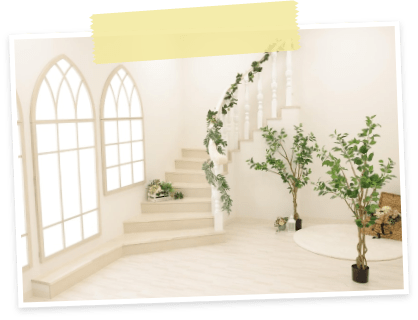 結婚式の撮影シーンでキッズ撮影ができます。結婚式場内ならではのオシャレな空間でのロケーション撮影が可能です。